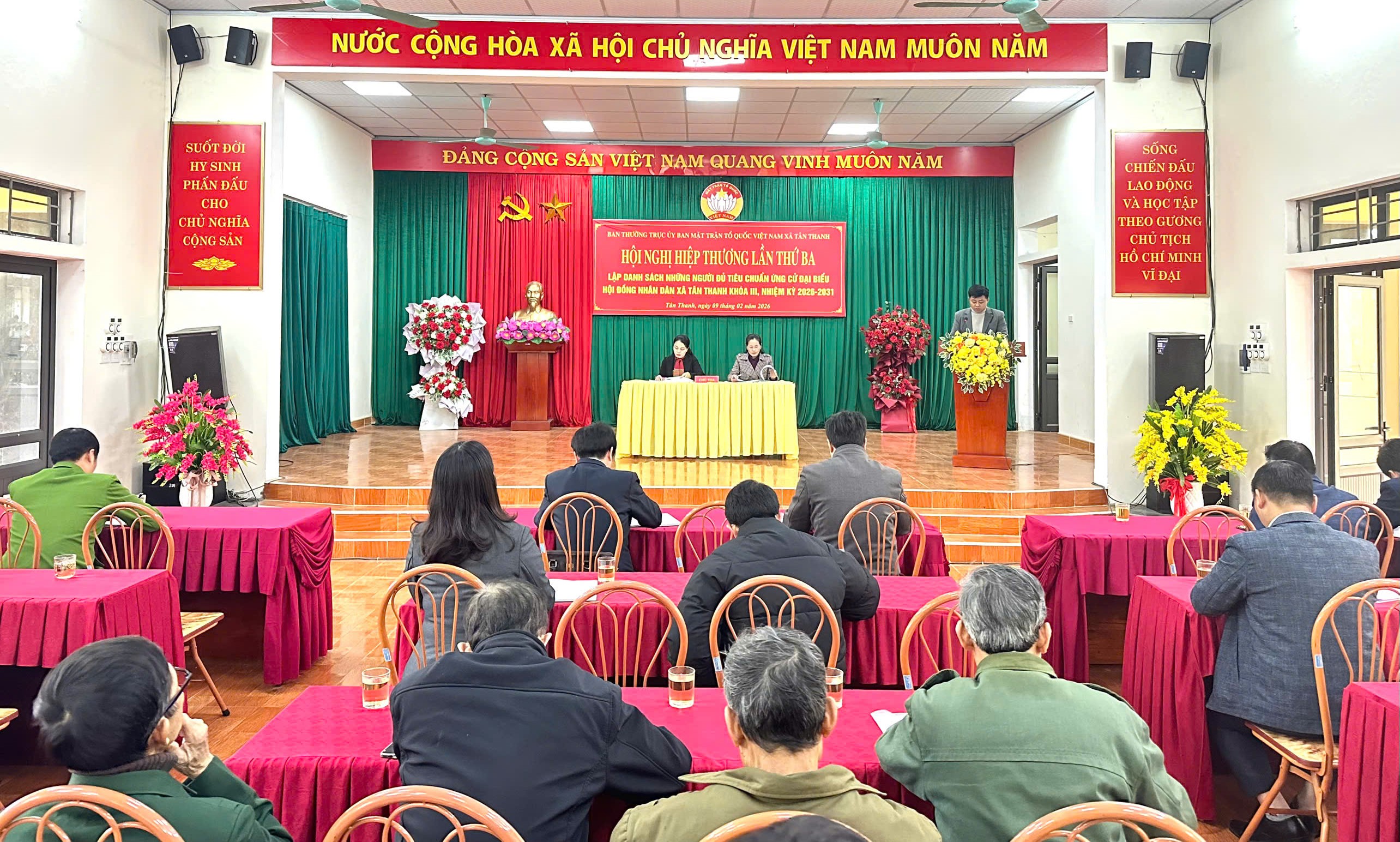Ngay sau khi kết thúc Hội nghị hiệp thương lần thứ hai, Ban Thường trực Ủy ban Mặt trận Tổ quốc Việt Nam xã Tân Thanh tổ chức Hội nghị triển khai, hướng dẫn việc tổ chức lấy ý kiến nhận xét và tín nhiệm của cử tri nơi cư trú về những người ứng cử đại biểu Hội đồng nhân dân xã Tân Thanh khóa III, nhiệm kỳ 2026 -2031.