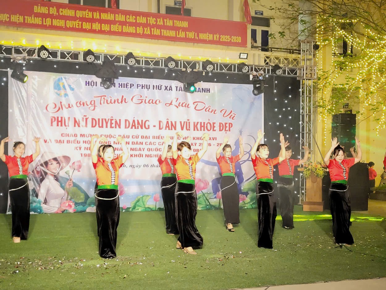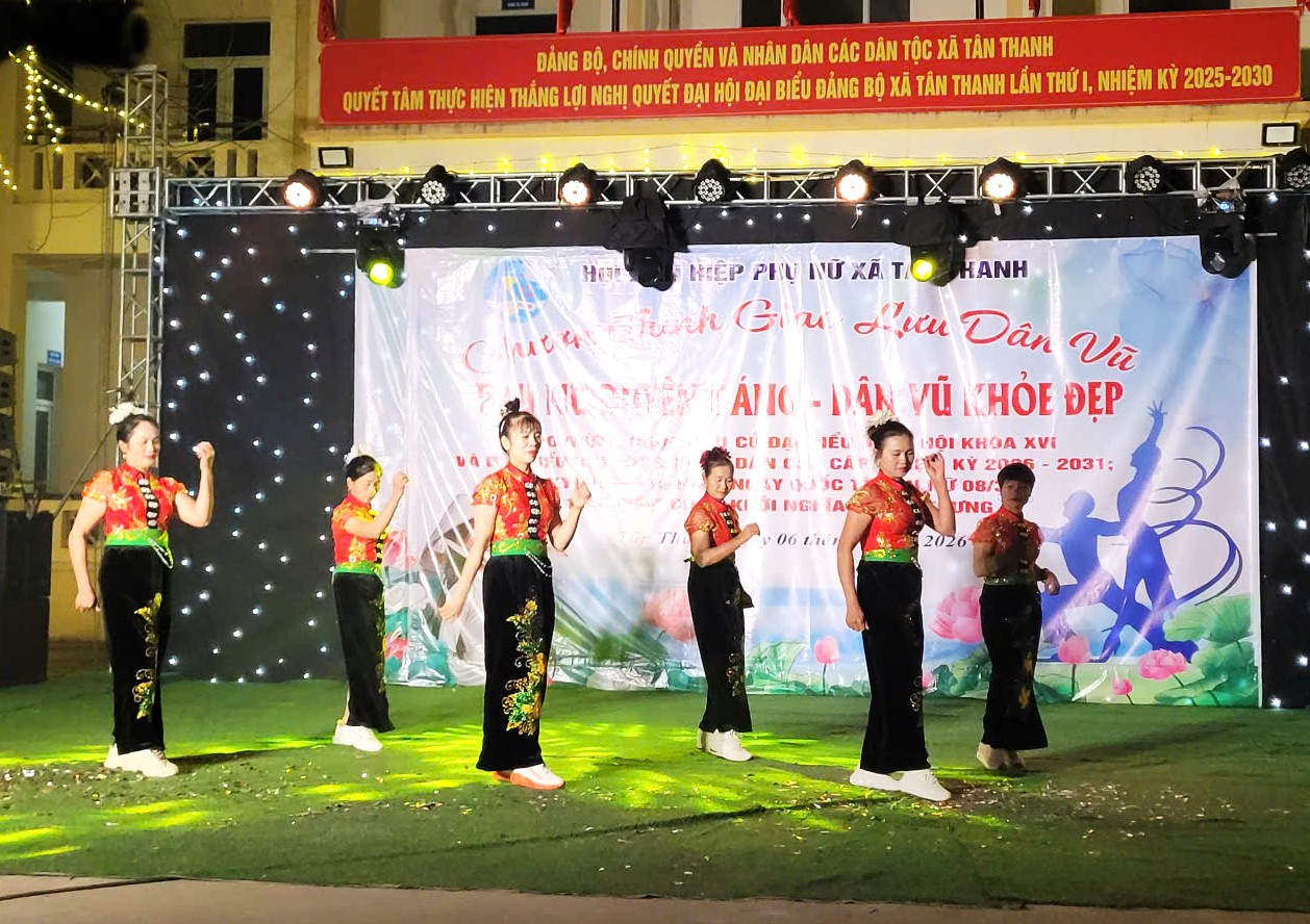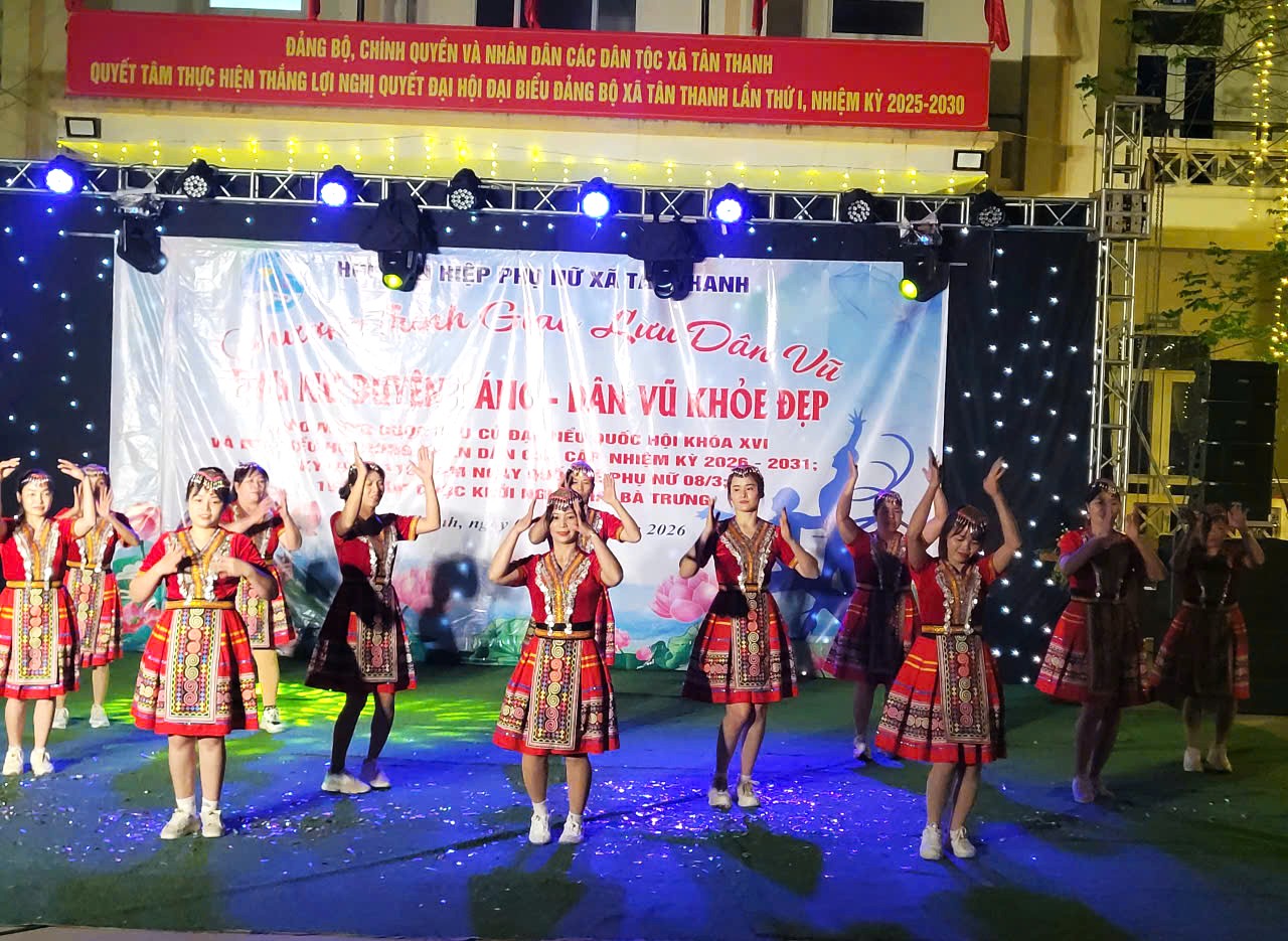 Chương trình giao lưu dân vũ có sự tham gia của đông đảo hội viên các Chi hội phụ nữ trên địa bàn xã biểu diễn hơn 20 tiết mục dân vũ. Các đội biểu diễn nhiều tiết mục dân vũ thể thao đặc sắc, những bước nhảy uyển chuyển, tự tin, khỏe khoắn trong từng điệu nhảy, từng động tác phối hợp theo từng điệu nhạc, nền nhạc, mang đến những màn trình diễn đẹp mắt, thu hút khán giả cổ vũ nồng nhiệt, lan toả tình đoàn kết, kết nối yêu thương và sẻ chia.