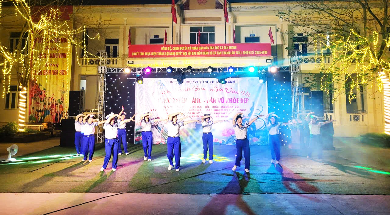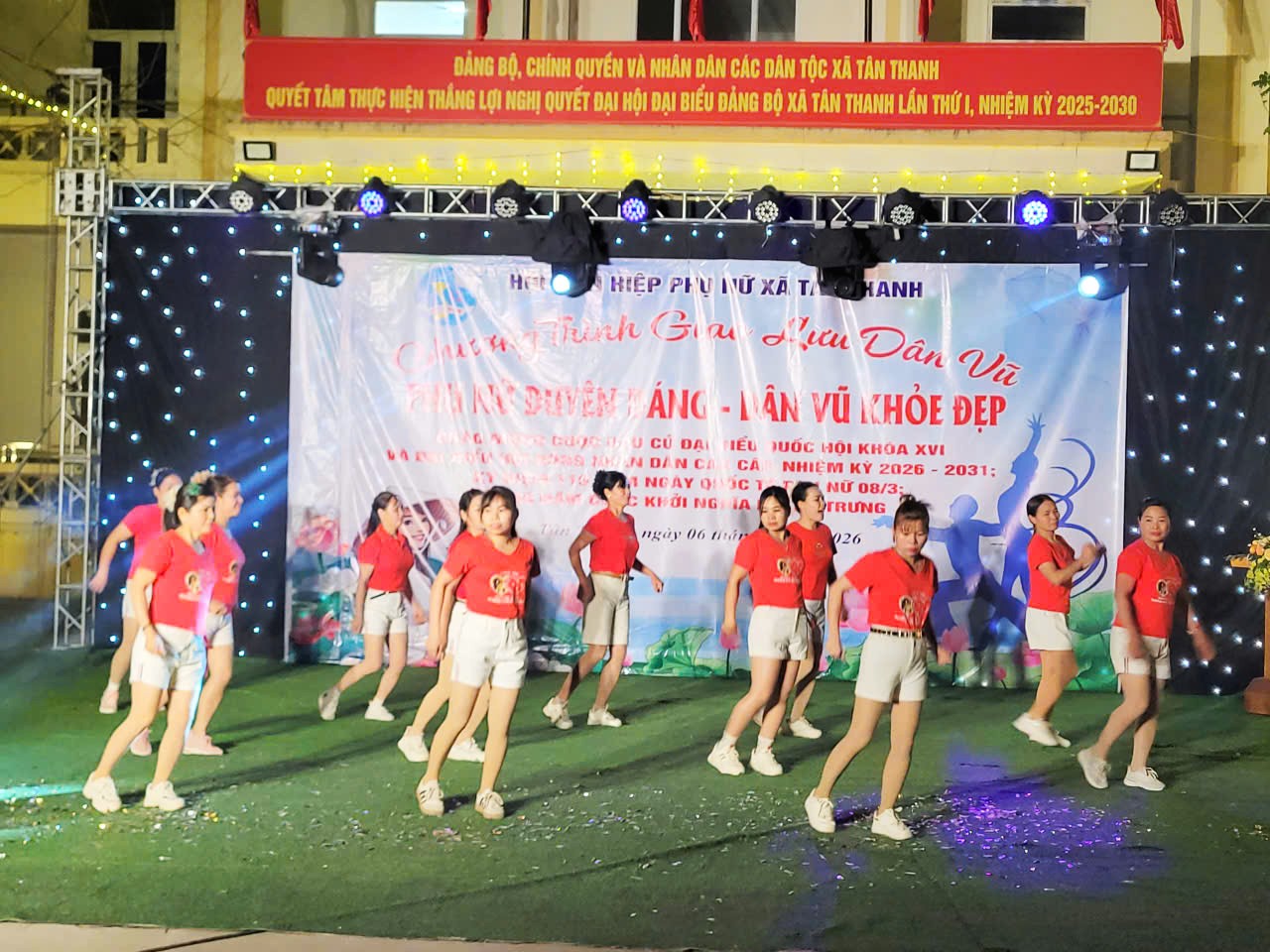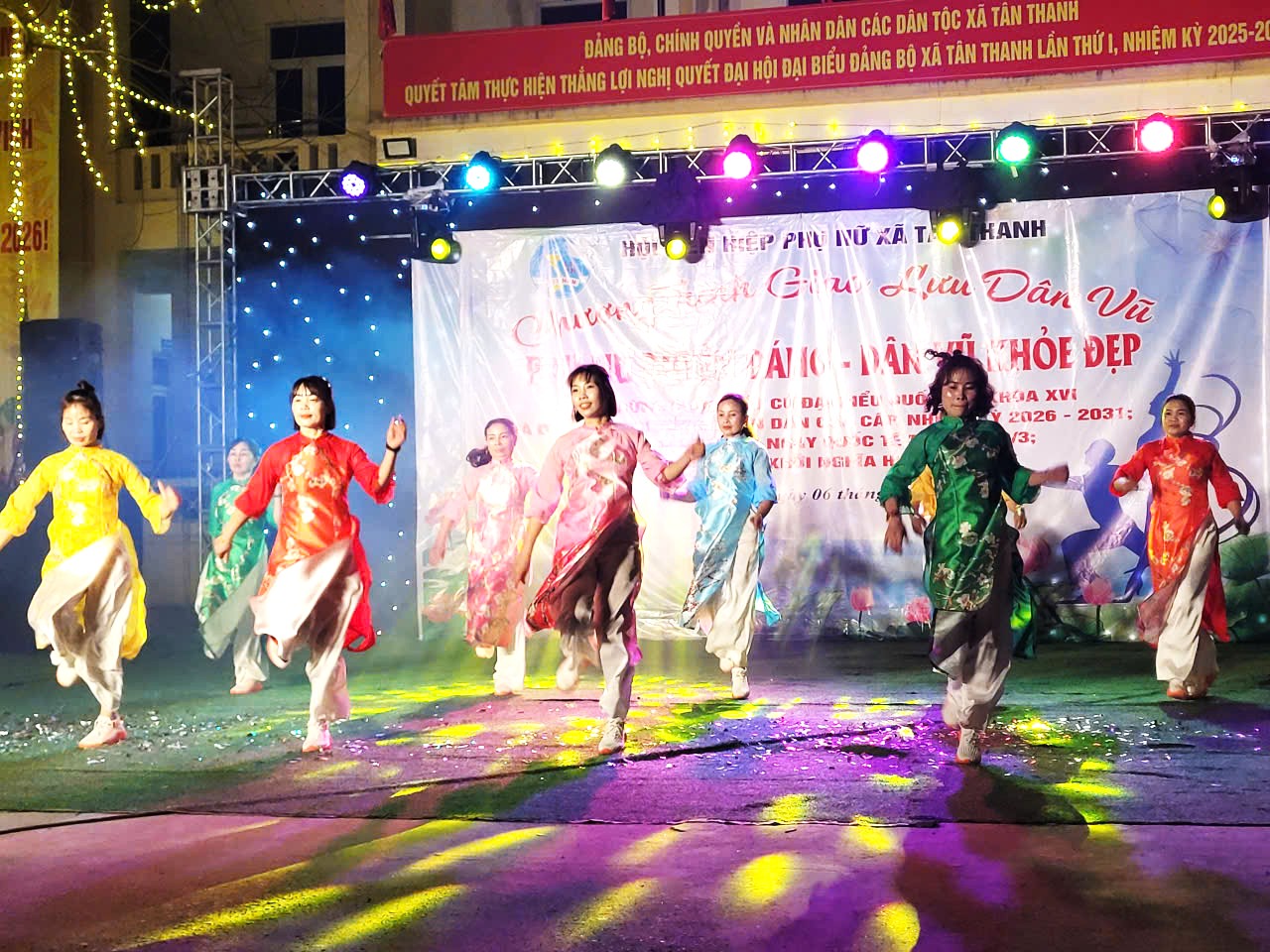 Chương trình giao lưu dân vũ có sự tham gia của đông đảo hội viên các Chi hội phụ nữ trên địa bàn xã biểu diễn hơn 20 tiết mục dân vũ. Các đội biểu diễn nhiều tiết mục dân vũ thể thao đặc sắc, những bước nhảy uyển chuyển, tự tin, khỏe khoắn trong từng điệu nhảy, từng động tác phối hợp theo từng điệu nhạc, nền nhạc, mang đến những màn trình diễn đẹp mắt, thu hút khán giả cổ vũ nồng nhiệt, lan toả tình đoàn kết, kết nối yêu thương và sẻ chia.