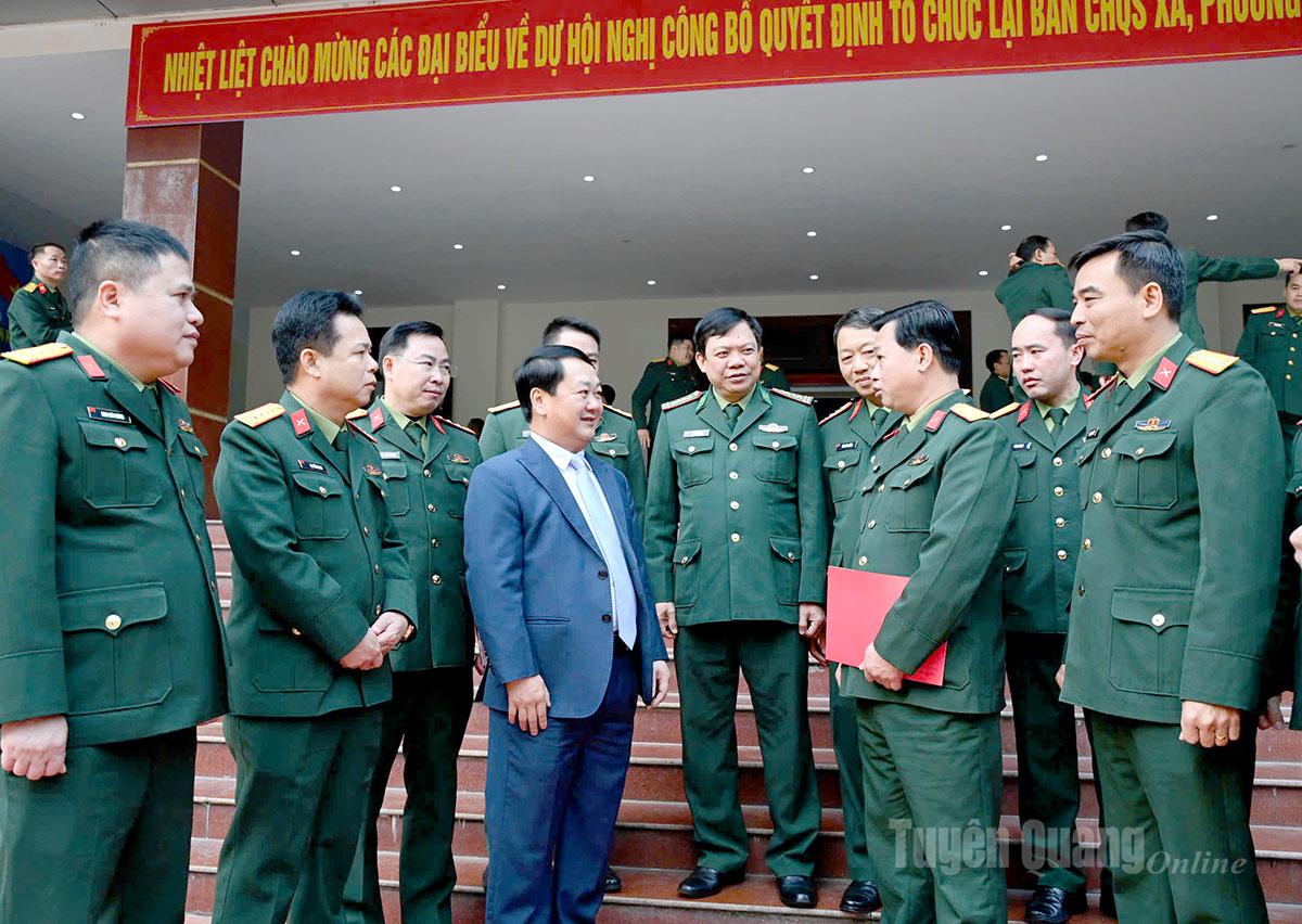 Để các chủ trương của Đảng, Quyết định của Bộ trưởng Bộ Quốc phòng phát huy hiệu quả ngay từ những ngày đầu, đồng chí Bí thư Tỉnh ủy yêu cầu Ban CHQS cấp xã, phường phát huy tối đa vai trò tham mưu đắc lực cho cấp ủy, chính quyền địa phương trong việc hoạch định và thực hiện thắng lợi nhiệm vụ quân sự, quốc phòng địa phương. Thực hiện công tác bàn giao chặt chẽ, minh bạch, đảm bảo an toàn tuyệt đối về con người và vũ khí trang bị; tuyệt đối không để quá trình sắp xếp, tổ chức làm gián đoạn các hoạt động thường xuyên của đơn vị.