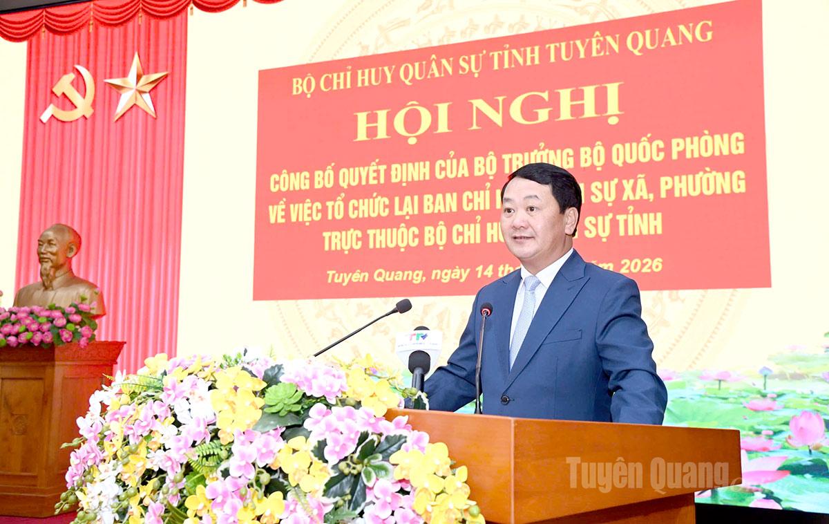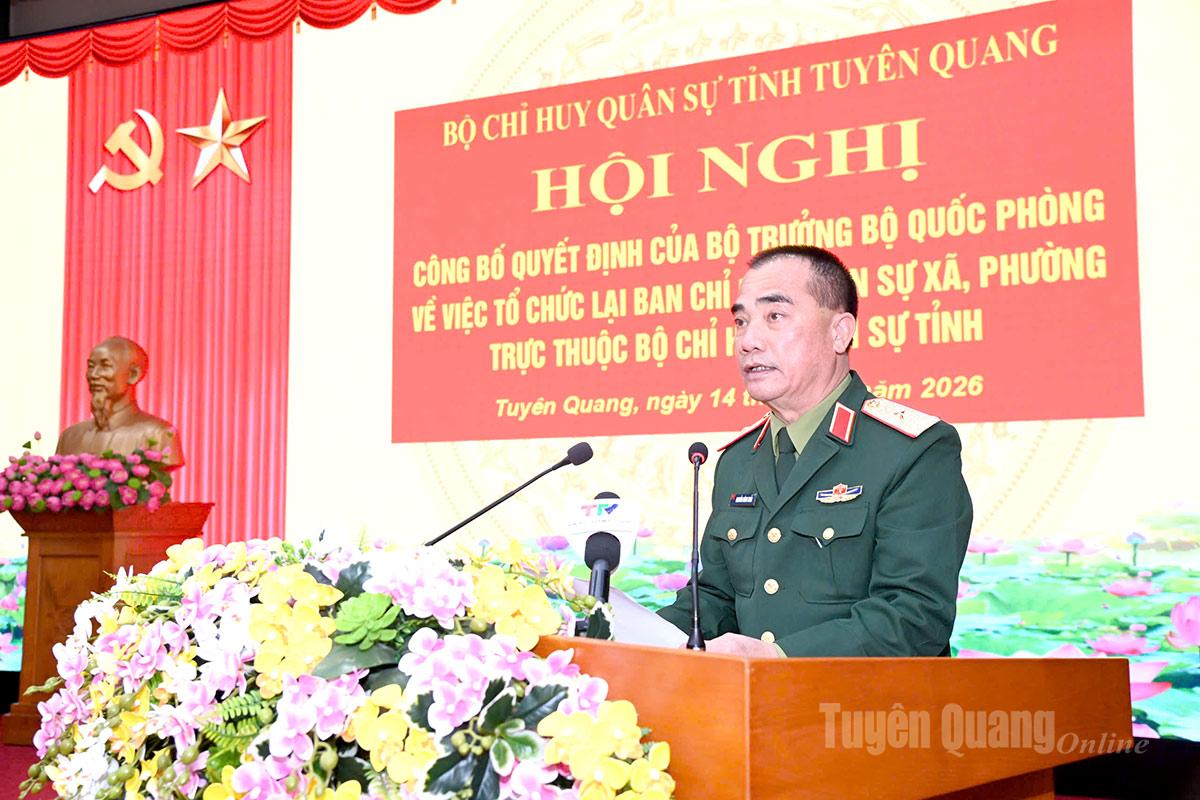 Tại hội nghị, các đại biểu đã nghe công bố Quyết định của Bộ trưởng Bộ Quốc phòng, Bộ Tổng tham mưu về việc tổ chức lại và ban hành biểu tổ chức, biên chế Ban CHQS xã, phường trực thuộc Bộ CHQS tỉnh; Quyết định của Chủ tịch UBND tỉnh Tuyên Quang về việc miễn nhiệm chức vụ Chỉ huy trưởng Ban CHQS cấp xã, phường. Hội nghị cũng công bố và trao Quyết định của Quân khu về việc điều động, bổ nhiệm chức vụ, cán bộ đối với các đồng chí thuộc các cơ quan, đơn vị về Ban CHQS các xã, phường trên địa bàn tỉnh Tuyên Quang.