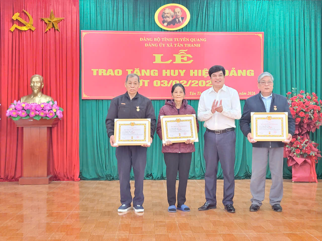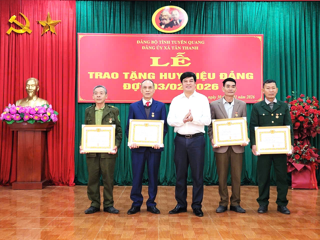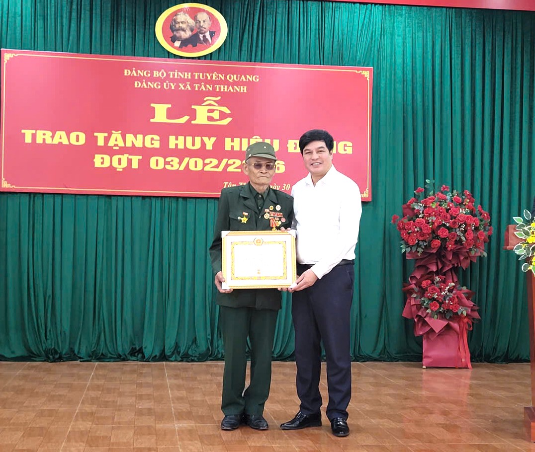 Đảng bộ xã Tân Thanh có 10 đảng viên sinh hoạt ở các chi bộ Ninh Hoà, Tân Thịnh, Vĩnh Sơn, Gốc Mít, Tân Quang, Đồng Giang, Tân Tiến, Tân Thịnh và Chi bộ Trường THCS và THPT Kháng Nhật được Ban Thường vụ Tỉnh ủy Tuyên Quang có Quyết định tặng Huy hiệu Đảng 30, 40, 45, 55, 60 năm tuổi Đảng.