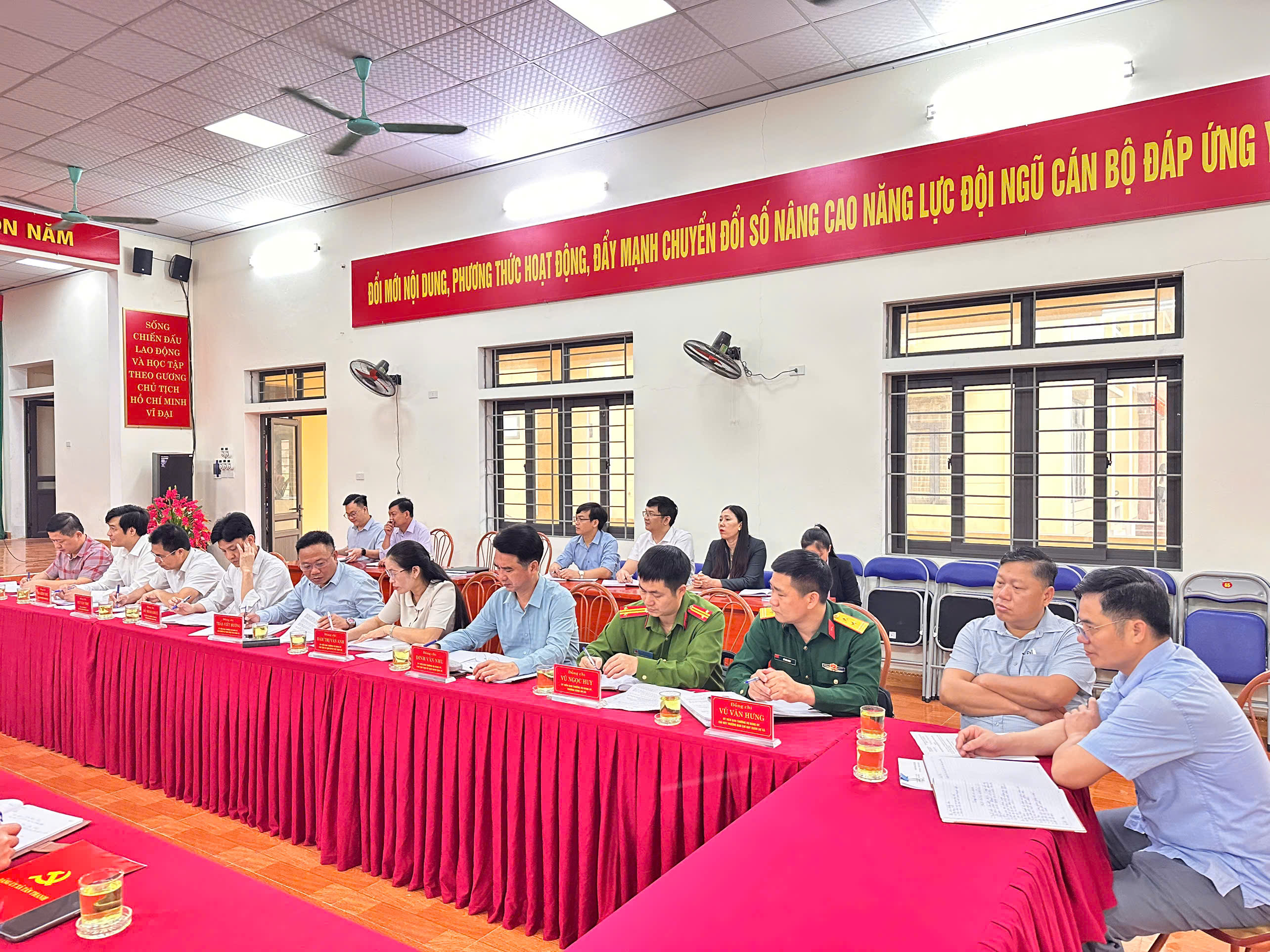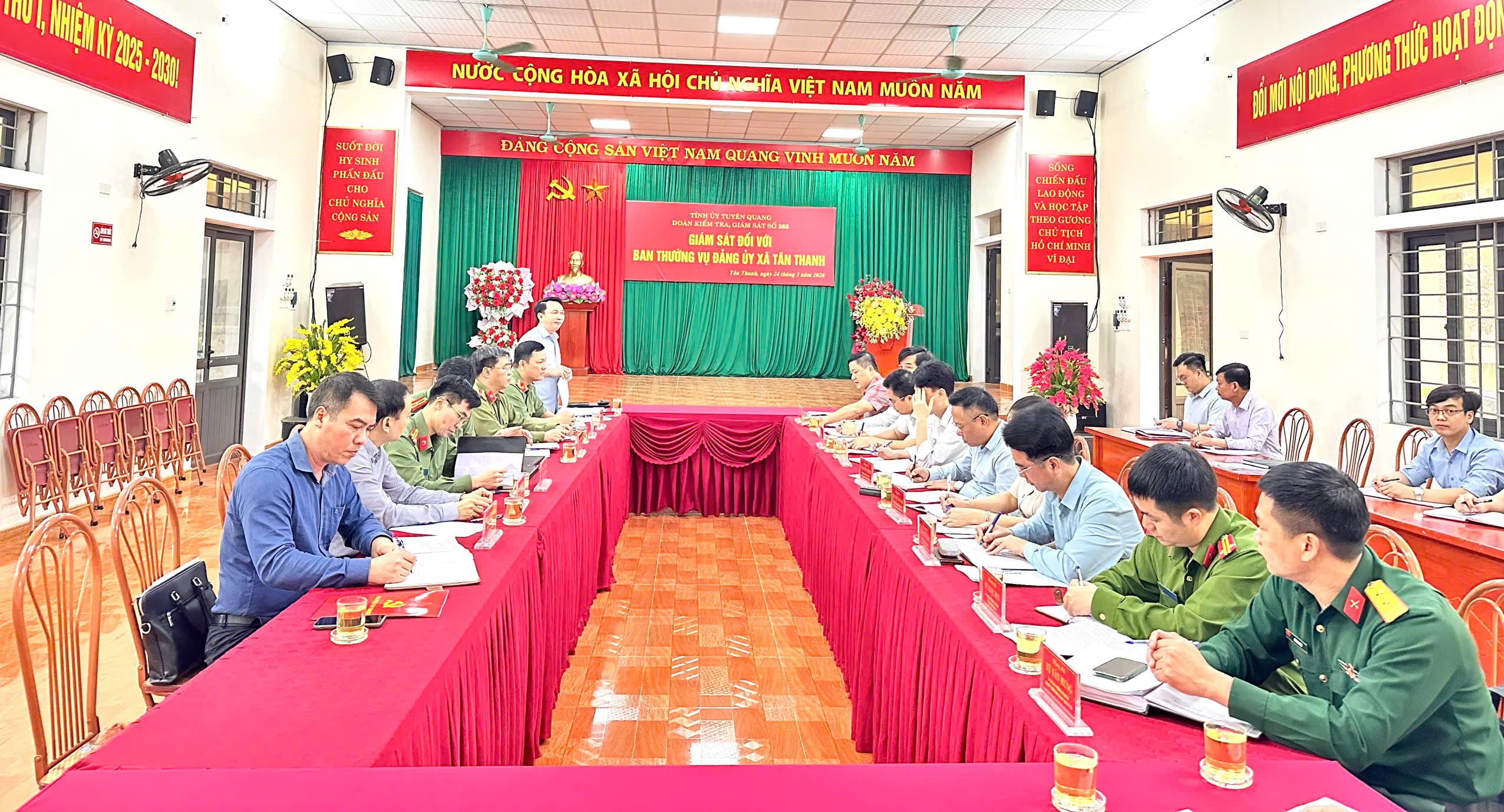Trên cơ sở nghiên cứu Báo cáo của Ban Thường vụ Đảng uỷ xã Tân Thanh và các tài liệu liên quan, Đoàn kiểm tra, giám sát đã trao đổi, làm rõ các nội dung, đồng thời thẩm tra, xác minh tại 2 tổ chức Đảng trực thuộc gồm Chi bộ các cơ quan Đảng và Chi bộ UBND xã.