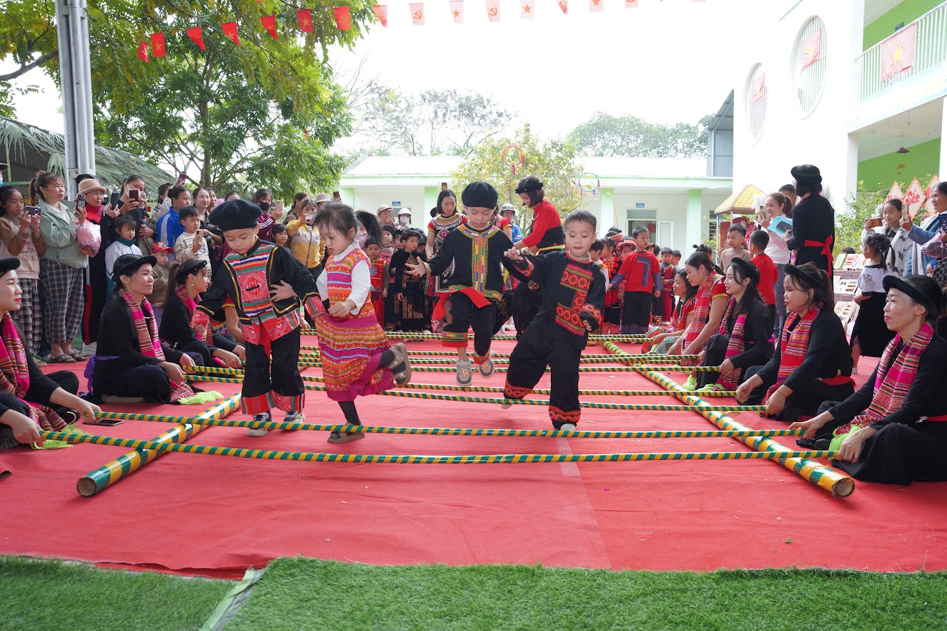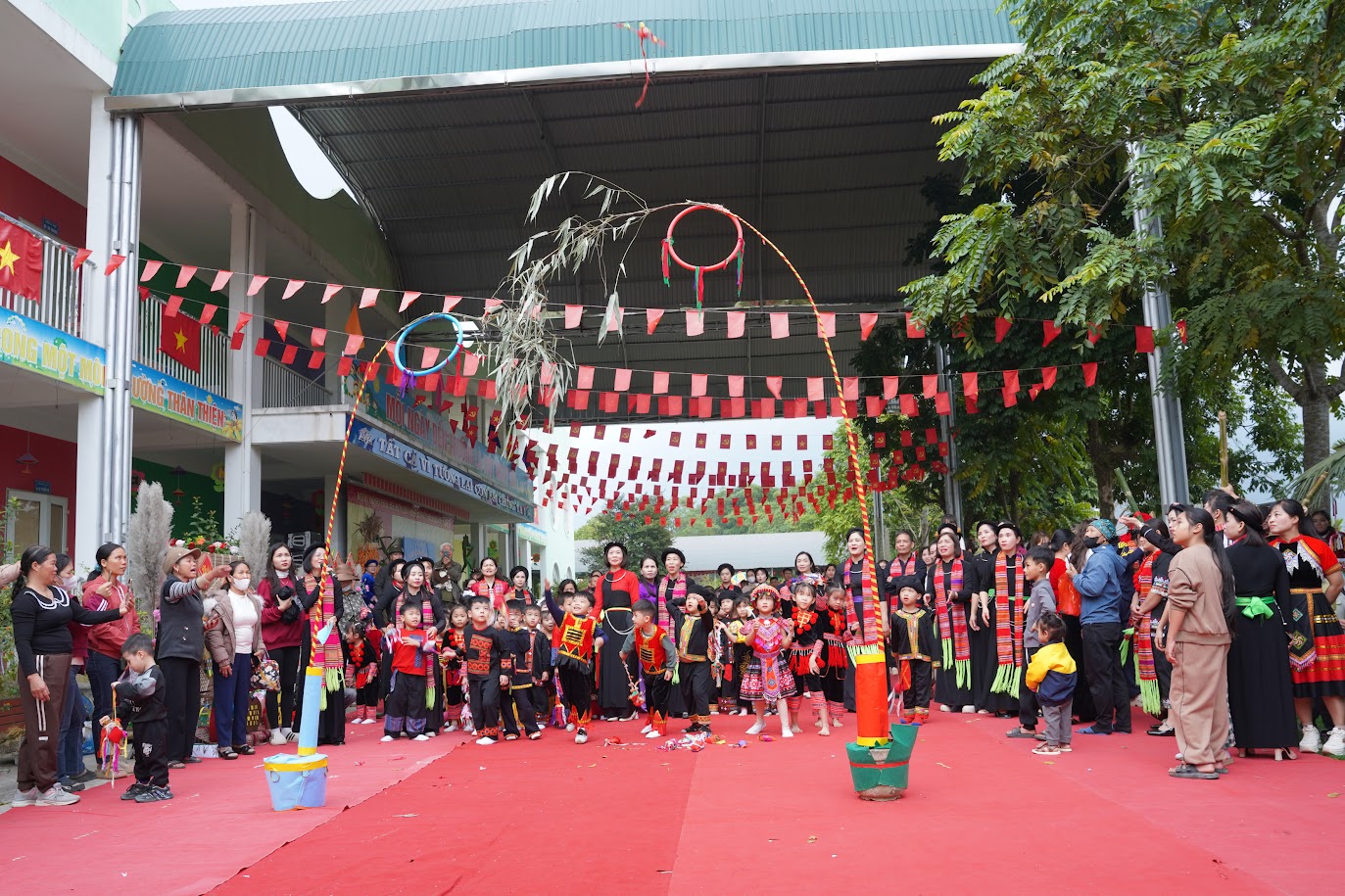 Các hoạt động giao lưu văn hóa như ném còn, nhảy sạp, giã bánh dầy diễn ra sôi nổi giúp trẻ hiểu biết về những nét văn hóa truyền thống của dân tộc, vốn ngôn ngữ, trang phục, ẩm thực, nhạc cụ; trẻ phát huy tính mạnh dạn, tự tin, khả năng giao tiếp, hợp tác và sáng tạo.