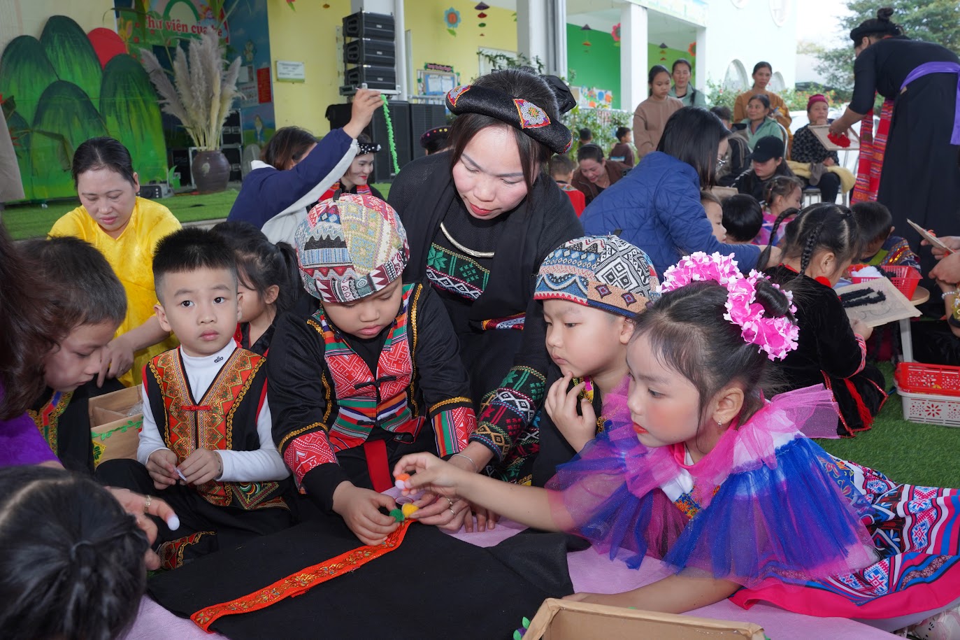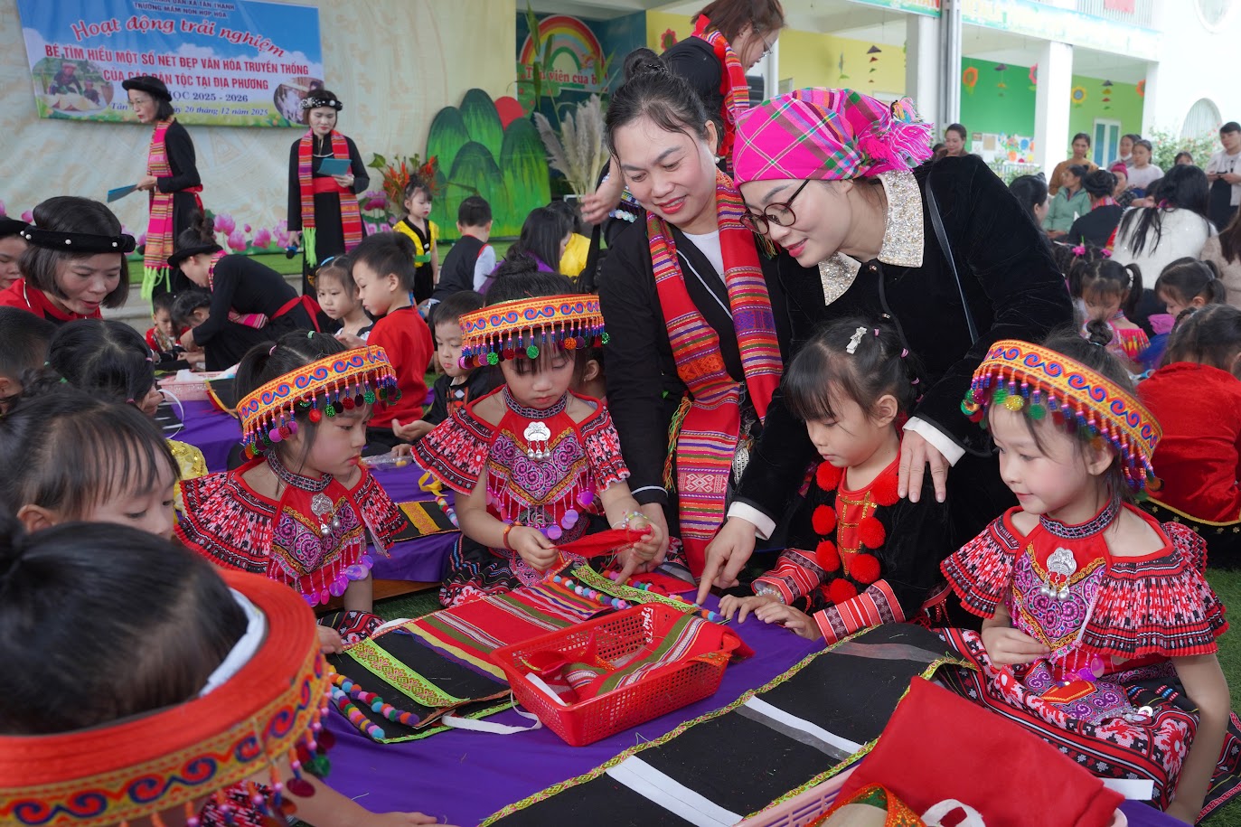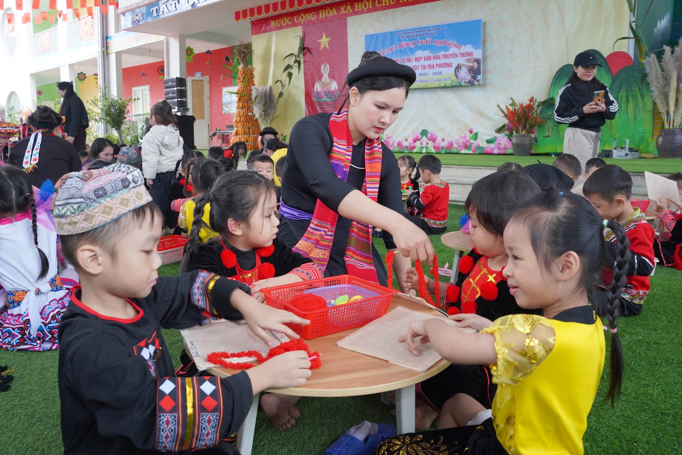 Dưới đây là các hoạt động trải nghiệm của các bé với sự hướng dẫn của cô giáo, ông, bà giữ nghề truyền thồng của các dân tộc và sự hỗ trợ của phụ huynh.