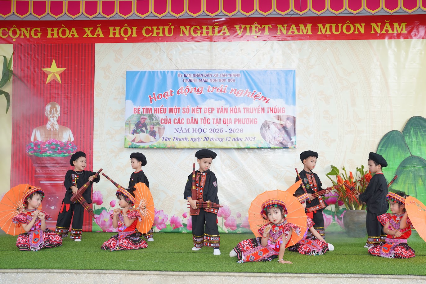 Trong chương trình của hoạt động trải nghiệm, các bé Trường Mầm non Hợp Hoà biểu diễn các tiết mục văn nghệ hát múa các bài hát dân tộc của địa phương; Giao lưu với ông, bà giữ nghề truyền thồng của các dân tộc; Tày, Dao, Sán Dìu. Các bé được trải nghiệm trực tiếp làm một số sản phẩm từ nghề truyền thống; thêu trang phục, đan lát, tô màu tranh, khâu còn; tổ chức các gian hàng, trưng bày, giới thiệu sản phẩm của đồng bào dân tộc.