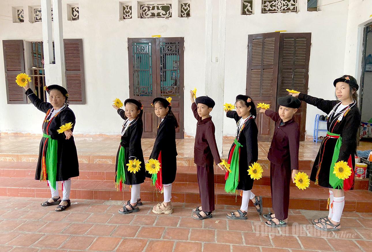 Em Hoàng Thu Huyền, 13 tuổi chia sẻ, được cùng các bạn học hát, múa tại nhà văn hóa thôn mỗi dịp hè cháu rất vui. Các ông, bà không chỉ dạy hát, múa, mà còn dạy chúng cháu phải biết yêu và tự hào với văn hóa dân tộc. Điều đó giúp cháu tự tin hơn trong cuộc sống và học tập. Ở lớp, cháu cũng là thành viên nòng cốt của đội văn nghệ, tham gia biểu diễn, hội thi của trường và đoạt giải cao.