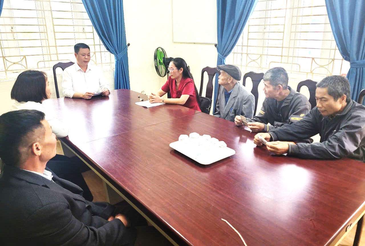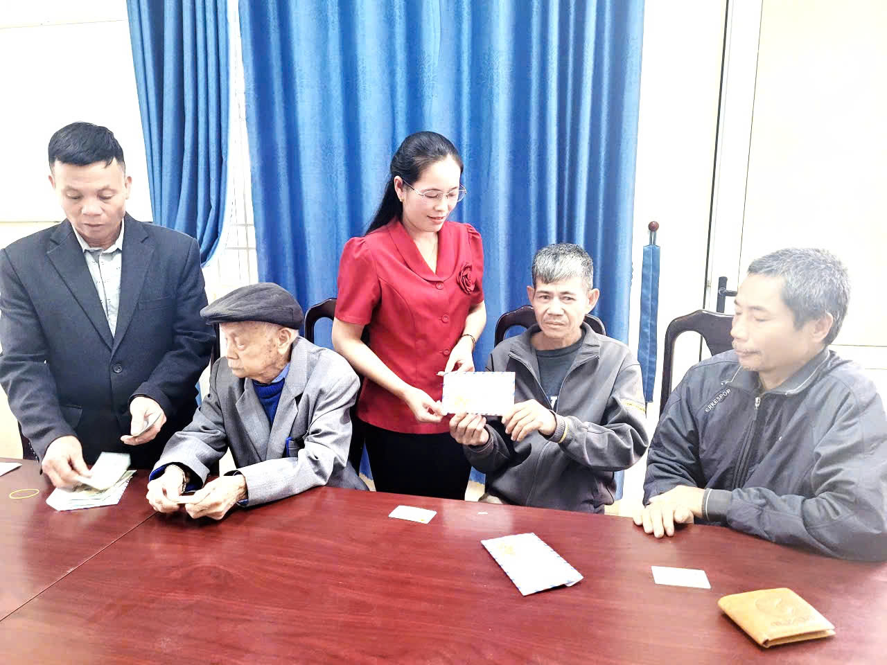 Các đồng chí lãnh đạo xã dự buổi trao tiền hỗ trợ cho các hộ thực hiện xoá nhà tạm, nhà dột nát.